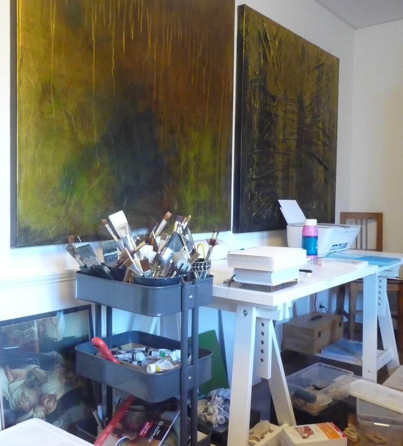 Seit 2024 arbeite ich mit verschiedensten Techniken und Materialien im "mixed-media-stil". Dabei kombiniere ich z.B. Marmormehl, Acrylfarben, Kaffeepulver, Pigmente, verschiedene Tinten und Kohle und verarbeite diese auf Leinwänden.